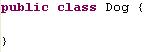 To begin creating Java objects, we'll create a new Java class named Dog. Leave it as such: