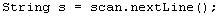 scan.nextLine(); will input all the text that was typed up to the point where the user hits the enter key. It's a quick and easy way to get input and to store it into a String.